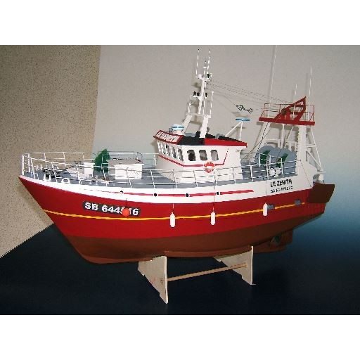Le Zénith est un authentique chalutier de 59,46 tonneaux, construit au chantier naval de SOCARENAM de Boulogne sur Mer et mis à I'eau en décembre 1985. Après une quinzaine d'années dédiées au chalut de fond en Manche-Est. Possibilité de motoriser et de monter une radiocommande (voir rubrique accessoires)