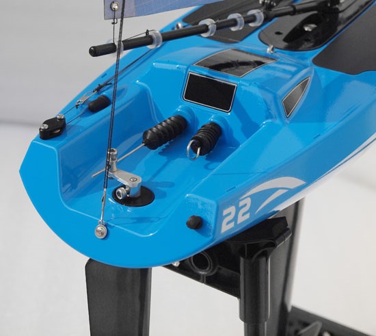 Voilier de plaisance de belles dimensions pour s'amuser, l’Orion est tout équipé et à 95% préparé pour la navigation. Il ne faudra que quelques minutes pour le mettre à l’eau. Il possède une coque en plastique, un mât et une bôme en fibre de verre, une radio 2 voies installée (en forme de téléphone portable très agréable à manipuler) avec 2 servos de 9 et 37g, une quille en plastique et un ballast en alu pour une parfaite stabilité. Un ber est également livré pour le préparer au bord de l’eau. Surface des voiles totale de 11,17 dm2. Ce bateau très facile à utiliser s'adresse tout particulièrement aux plus jeunes désireux de faire naviguer leur premier voilier radiocommandé.