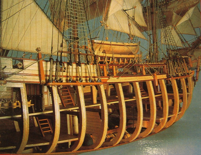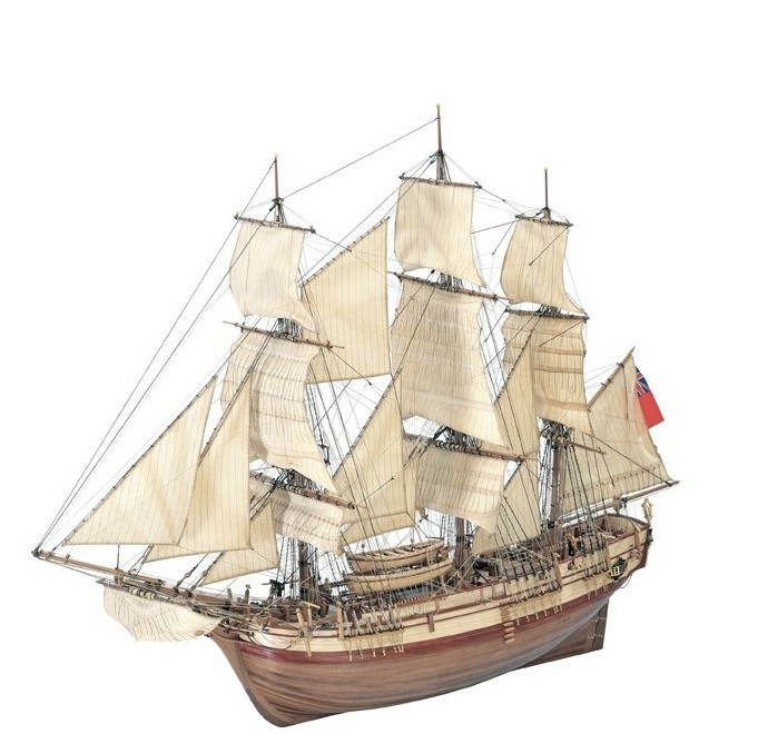 Le modèle "Bounty" est bien connu de tous grâce aux nombreux films et livres publiés. C'est un navire relativement simple : un bateau marchand avec gréement de frégate et aménagé pour des voyages d'exploration, pratique habituelle dans toutes les marines pendant les 18ème et 19ème siècle.