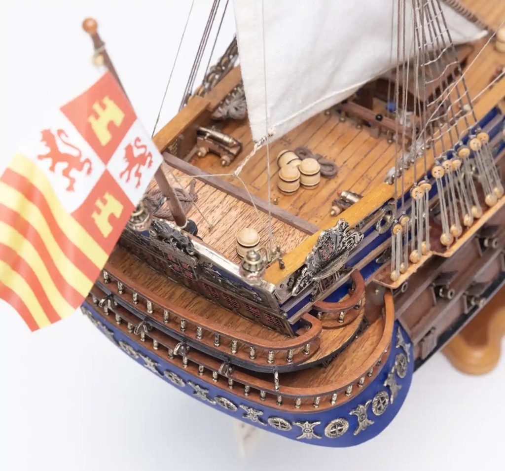 Avec 108 canons et des dimensions impressionnantes de 67 mètres de long, 16,5 mètres de large et 12 mètres de tirant d'eau, le San Felipe, orné de sculptures majestueuses, était un adversaire redoutable capable de rivaliser avec n'importe quel ennemi de l'époque.