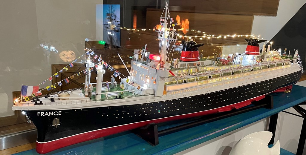 Construit par les chantiers de l'Atlantique et inauguré à Saint Nazaire le 11 mai 1960. D'une longueur de 315 m, il peut accueillir 2000 passagers. Très belle boîte de construction d'une maquette navigante au 1/200ème, d'une longueur de 1,58 m. Nombreuses pièces de superstructures, blocs avant et arrière en bois massif, plan détaillé, notice de montage.