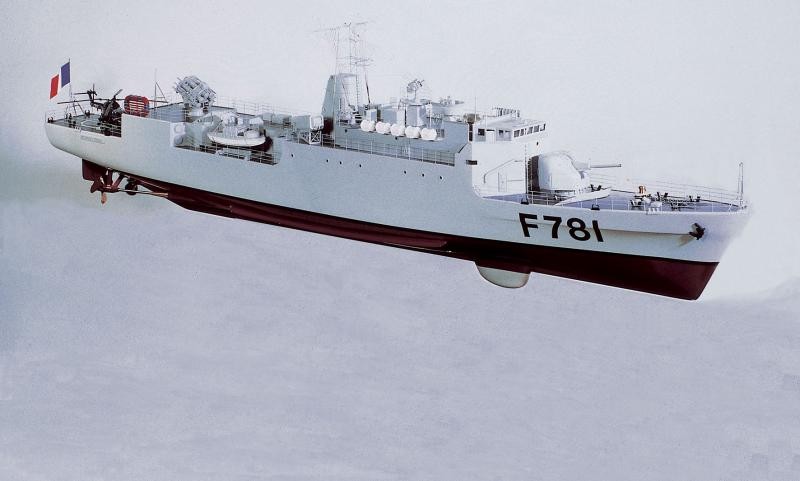 Premier de la série des AVISO A 69, ayant pour mission la surveillance maritime côtière et plus spécialement la lutte anti sous-marine par fonds inférieurs à 200 m. Plate-forme arrière recevant un hélicoptère. Très belle maquette navigante prévue pour la radiocommande. Boîte très complète contenant couples découpés, blocs avant et arrière finis, hélices et arbres d'hélice ainsi que nécessaire à la réalisation des rambardes. Plan détaillé à l'échelle, photos et notice de montage inclus. L'accastillage complémentaire fait l'objet d'une boîte séparée.