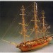 Construction tout bois par couples et listeaux. Accastillage très complet inclus dans la boîte, comprenant les poulies et caps de mouton en buis, les canons en laiton tourné, les pièces de décoration en laiton, la barque de sauvetage, Les plans de montage sont en 5 feuillets..