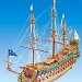 Le Soleil Royal avec son armement fastueux avec de nombreuses sculptures moulées en bronze, ses lanternes ciselées et dorées donnent au bateau un aspect majestueux. Le Soleil Royal était un des plus beaux bateaux de la flotte de Louis XIV, il prit la mer en 1669, depuis les chantiers de Brest. Il avait été réalisé par le célèbre constructeur français L. Hubac. Il était armé de 80 canons et se distingua particulièrement dans les combats navals contre les Anglais à Beversiers et Aga. En 1692, le Soleil Royal fut attaqué par la flotte anglaise devant Cherbourg et envoyé par le fond. Ce modèle a été réalisé avec une décoration remarquable, habituelle à la marque Sergal. La coque construite en bois est recouverte d'un double bordé en listeaux de noyer, les pièces en bois sont découpées au laser. Les 108 pièces d'artillerie et les garnitures sont en laiton moulé. Tous les ornements restants sont également en laiton moulé. Toutes les pièces d'accastillage nécessaires sont soit en noyer, soit en laiton. Le plan de montage de 9 feuillets, les nombreux et extraordinaires croquis de détails facilitent considérablement la construction du modèle