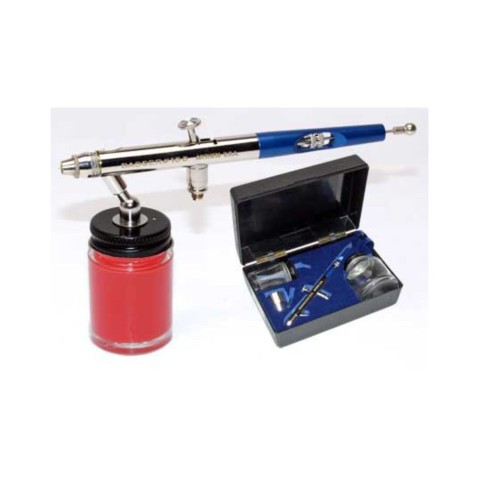 Aerographe Anthem 155-1 avec les flacons, le support, et la coupelle.