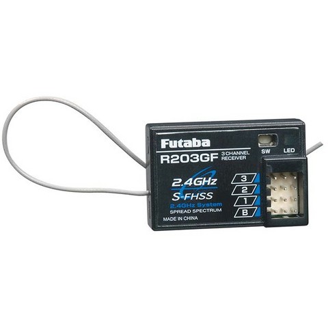 Ensemble télécommande 3PV 2.4GHz + Récepteur R203GF (3 voies)Futaba nous propose cette radiocommande pour voiture ou bateau RC en 3 voies 2.4GHz utilisant les toutes dernières technologies T-FHSS/S-FHSS/FHSS